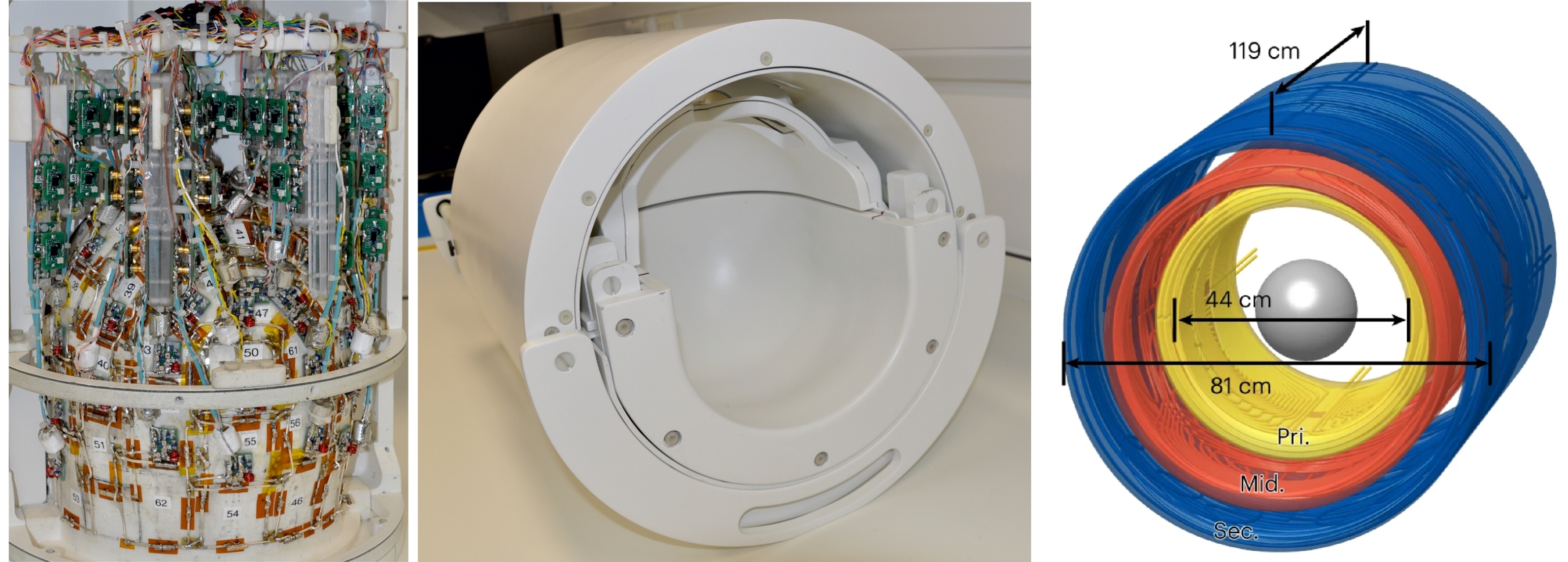 The scanner has integrated a 128-channel receiver system with 64- and 96-channel receiver coil arrays to boost signal in the brain cortex close to the coil array while reducing g-factor noise to enable higher accelerations for faster imaging. A 16-channel transmit system reduced power deposition and improved image uniformity.