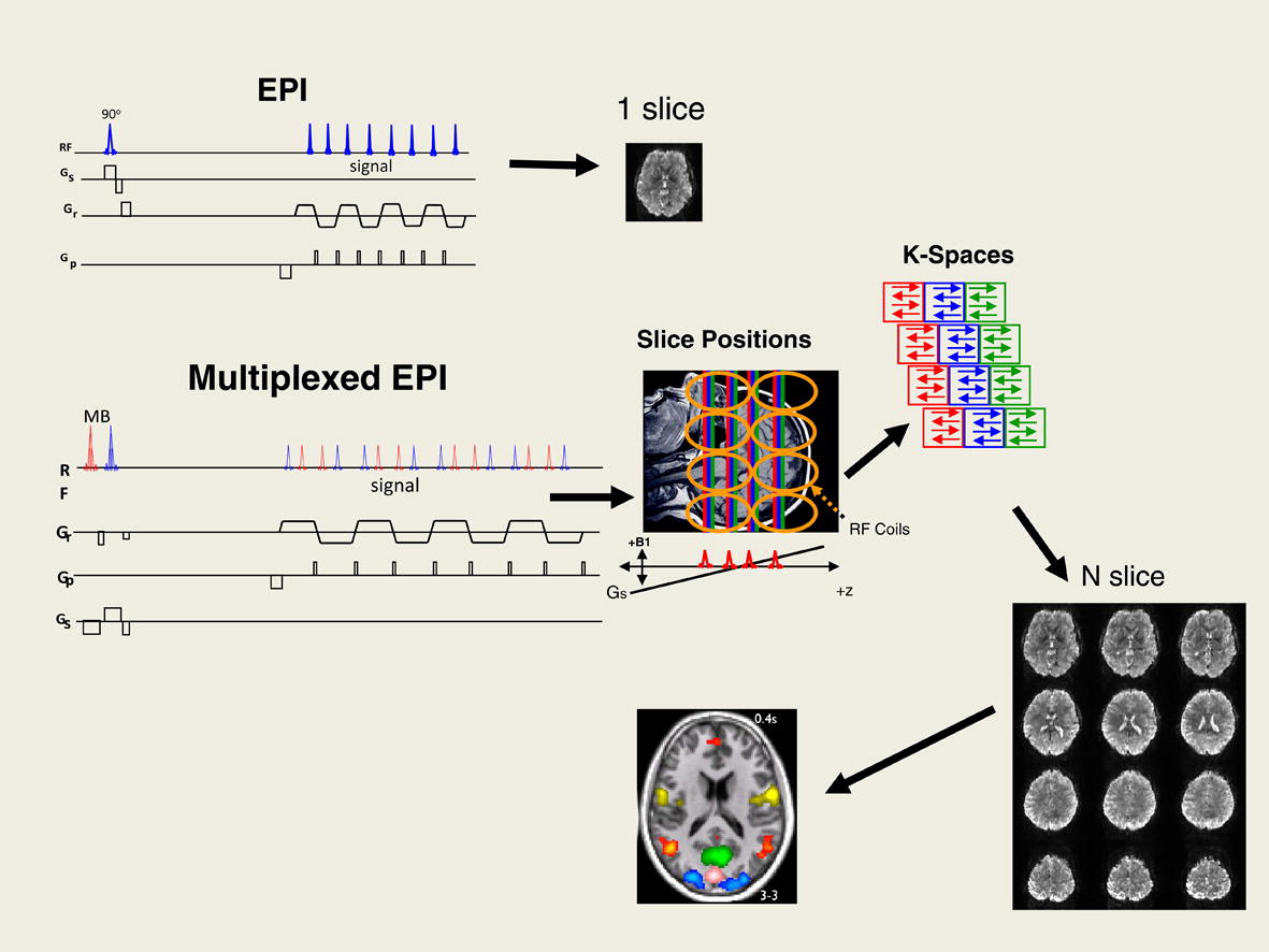 Our lab developed the Simultaneous Multi-Slice (SMS) and Multiband techniques that have become the global standard for the Human Connectome Project. We continue to innovate in "multiplexed" imaging, allowing for sub-second whole-brain acquisitions.